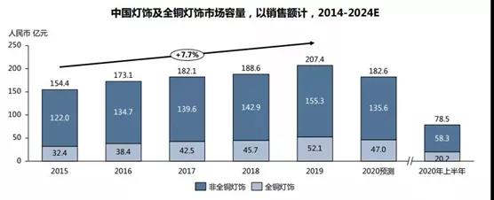 从2015年的32.4亿元人民币增长到了2019年的52.1亿元人民币,年复合增长率达12.6%,全铜灯饰正逐渐受到消费者的青睐。
