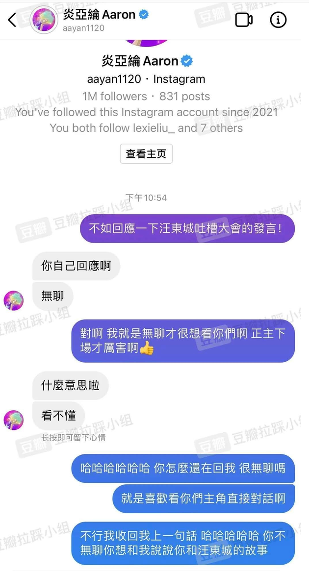 新浪娱乐讯 近日,汪东城在节目中谈及团长久的奥义是队员之间的感情要很好,“最好让你的队员爱上你”,被指内涵自己与炎亚纶的绯闻。随后,有网友私信炎亚纶此事后得到回复:“你自己回应啊,无聊”,表示自己看不懂这是什么意思。