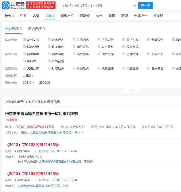新浪娱乐讯3月29日,据企查查APP显示,近日张杰名誉权纠纷一审胜诉。判决书中显示被告曾发表过辱骂张杰及其家人的言论,法院要求其在《人民法院报》非中缝位置公开发表对张杰的致歉声明,并赔偿张杰精神损害抚慰金3万元与诉讼合理支出2万元。
