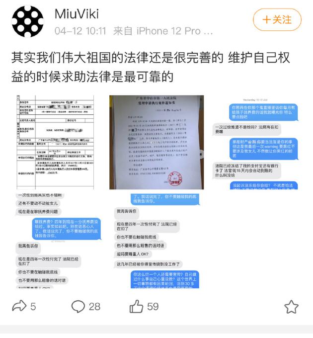 新浪娱乐讯 4月12日,刘洲成前妻晒出与刘洲成的聊天记录称:“我们伟大祖国的法律还是很完善的,维护自己权益的时候求助大了还是最可靠的。”二人疑似在女儿抚养费方面的问题产生纠纷,刘洲成方似乎有过拖欠女儿抚养费的行为,林苗最终将其告上法庭要求强制执行。
