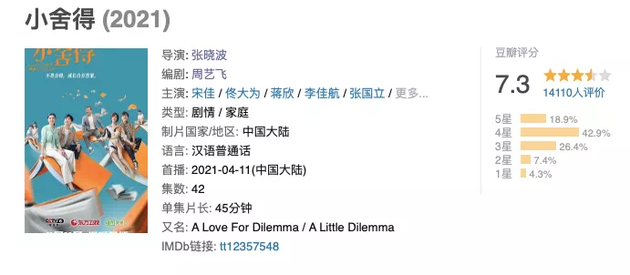 播出三分之一后,《小舍得》显然没有接住系列前作《小欢喜》带来的高期待。目前该剧豆瓣评分停留在7.3,和《小欢喜》《小别离》8分+的口碑差距较为明显。