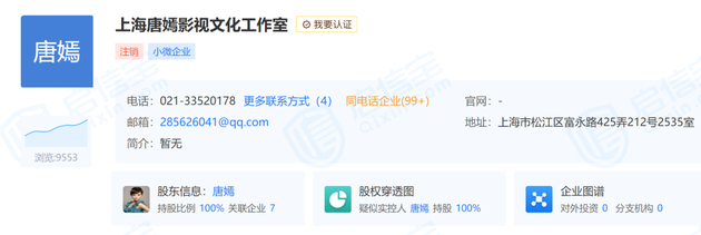 唐嫣全资公司上海唐嫣影视文化工作室注销