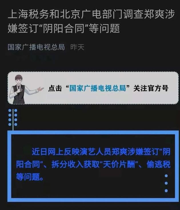 上海市税务局第一稽查局调查核实郑爽偷税漏税一事